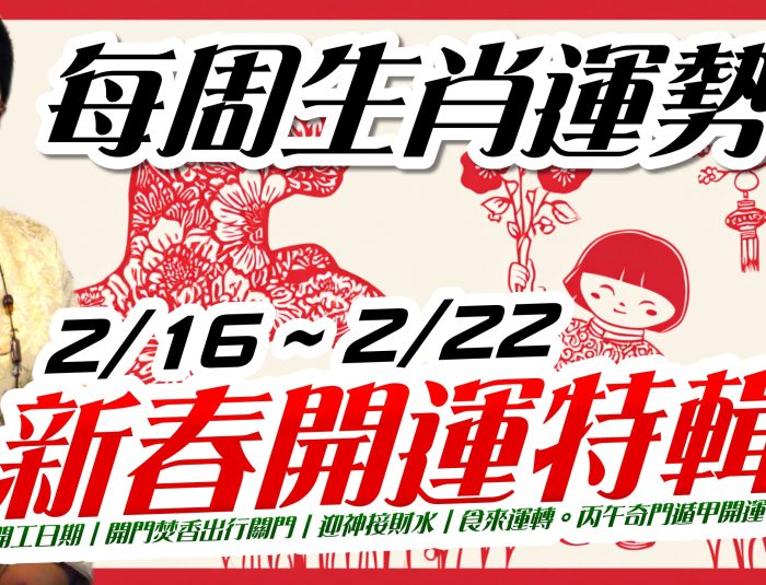 新春開運特輯。2026開工日期|開門焚香出行關門|迎神接財水|食來運轉。丙午奇門遁甲開運。2026生肖運勢週報|2/16-2/22|金玲老師
